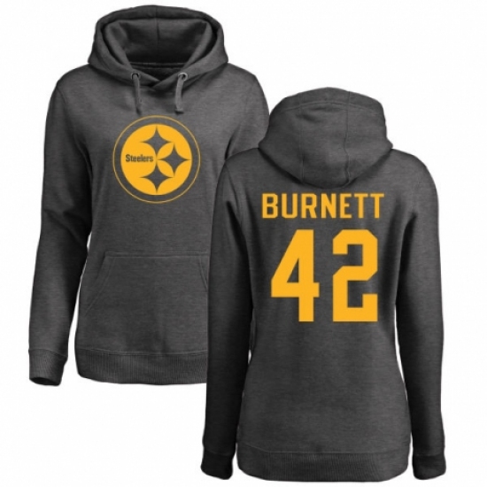 >Women's Nike Pittsburgh Steelers #42 Morgan Burnett Ash One Color Pullover Hoodie