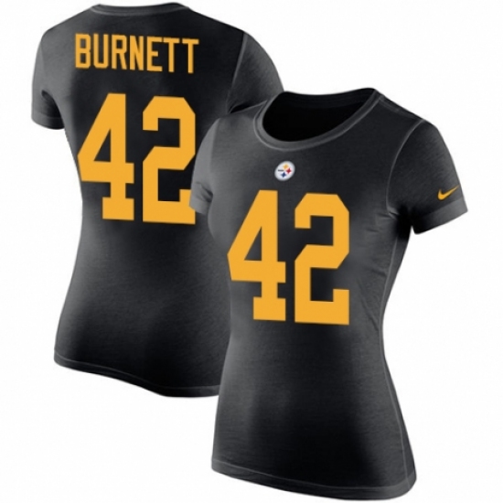 >Women's Nike Pittsburgh Steelers #42 Morgan Burnett Black Rush Pride Name & Number T-Shirt