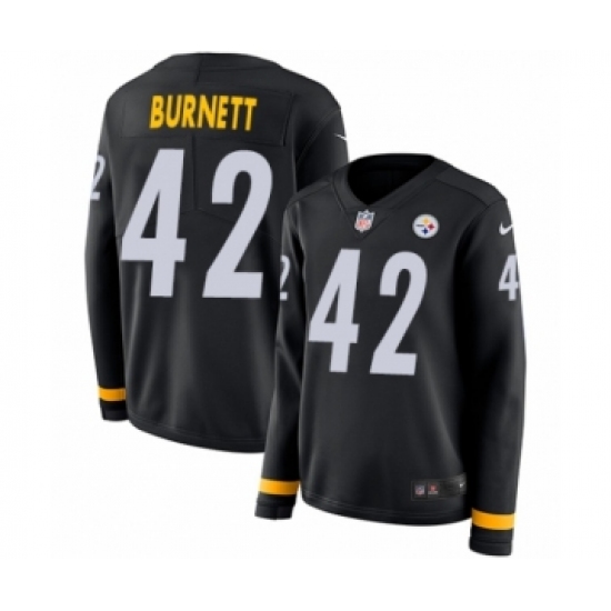 Women's Nike Pittsburgh Steelers #42 Morgan Burnett Limited Black Therma Long Sleeve NFL Jersey