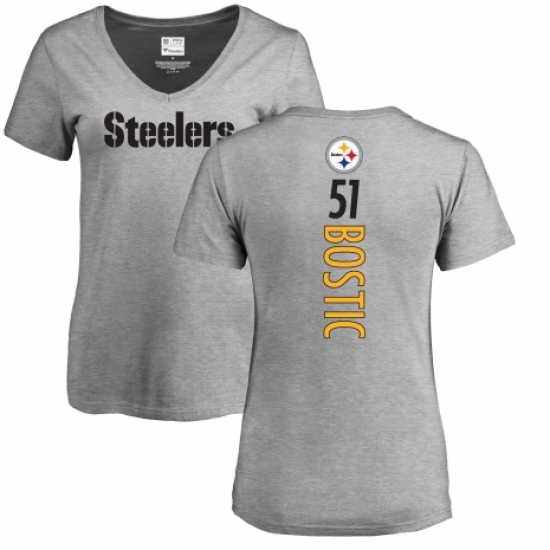 >Women's Nike Pittsburgh Steelers #51 Jon Bostic Ash Backer V-Neck T-Shirt