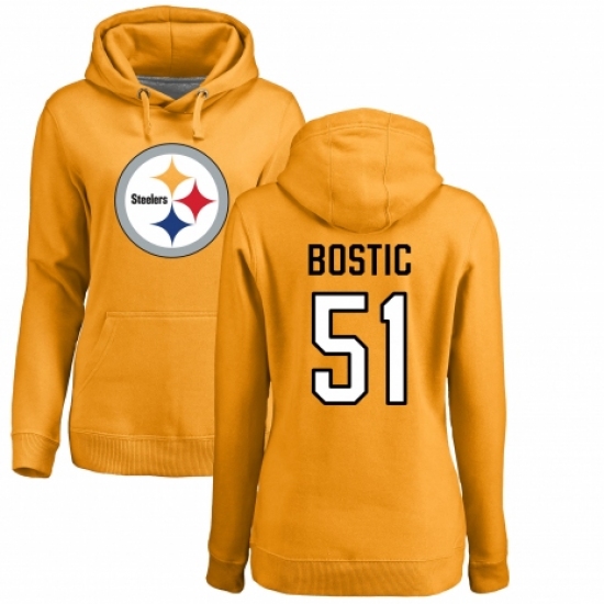 >Women's Nike Pittsburgh Steelers #51 Jon Bostic Gold Name & Number Logo Pullover Hoodie