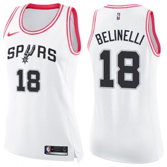 Women's Nike San Antonio Spurs #18 Marco Belinelli Swingman White Pink Fashion NBA Jersey