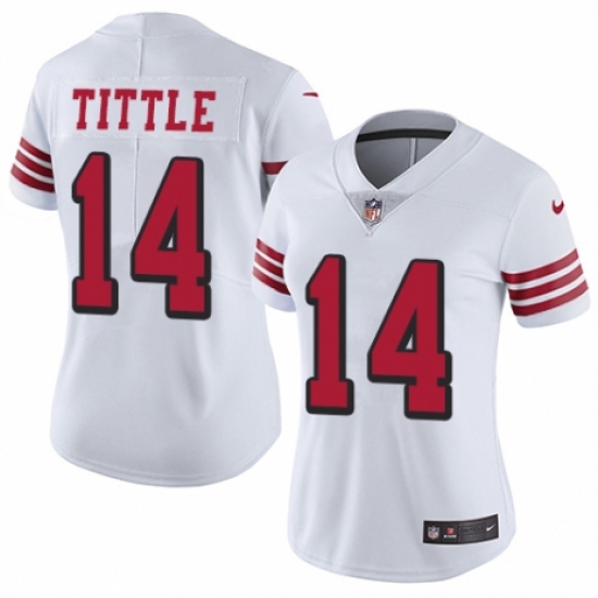 Women's Nike San Francisco 49ers #14 Y.A. Tittle Limited White Rush Vapor Untouchable NFL Jersey