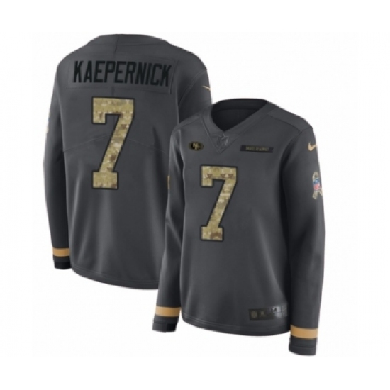 Women's Nike San Francisco 49ers #7 Colin Kaepernick Limited Black Salute to Service Therma Long Sleeve NFL Jersey