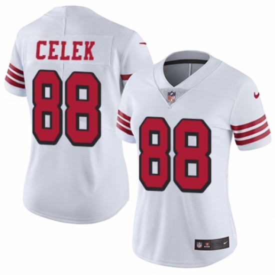 Women's Nike San Francisco 49ers #88 Garrett Celek Limited White Rush Vapor Untouchable NFL Jersey