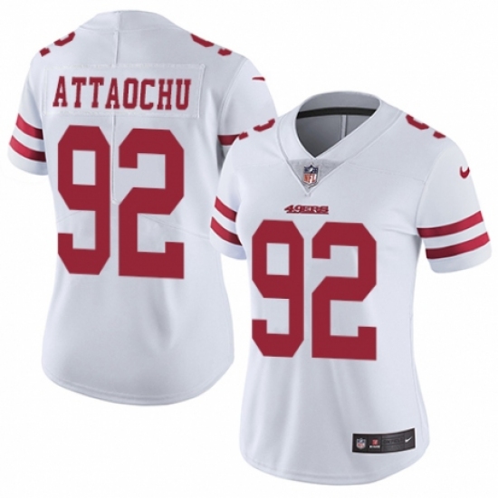 Women's Nike San Francisco 49ers #92 Jeremiah Attaochu White Vapor Untouchable Limited Player NFL Jersey