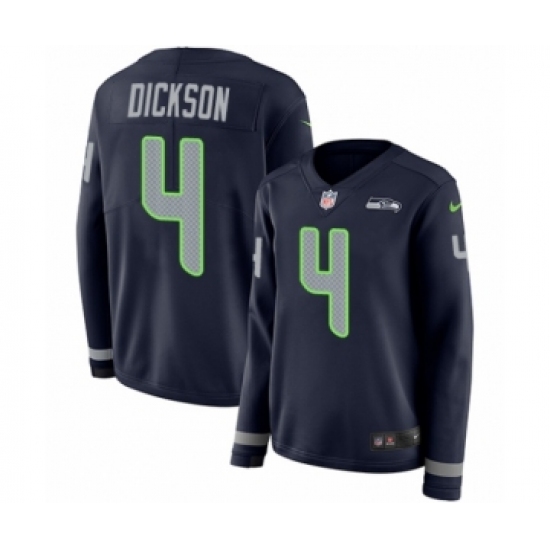 >Women's Nike Seattle Seahawks #4 Michael Dickson Limited Navy Blue Therma Long Sleeve NFL Jersey