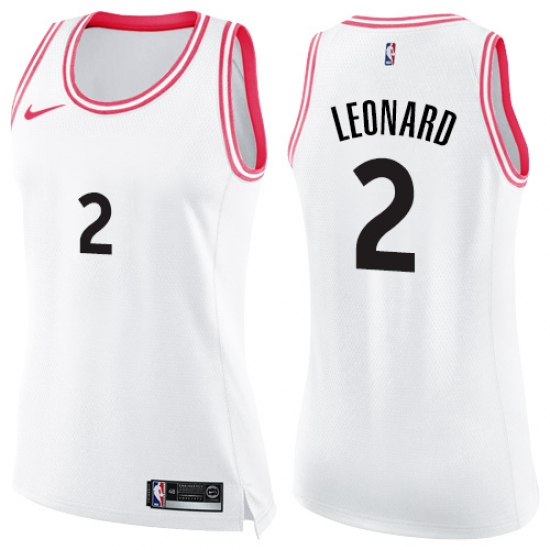 Women's Nike Toronto Raptors #2 Kawhi Leonard Swingman White Pink Fashion NBA Jersey