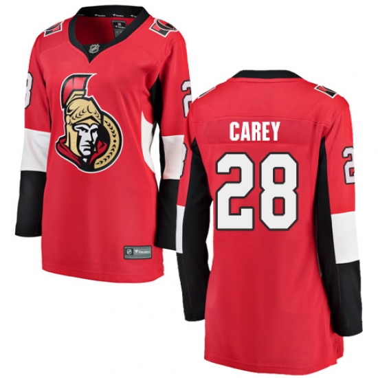 Women's Ottawa Senators #28 Paul Carey Fanatics Branded Red Home Breakaway NHL Jersey