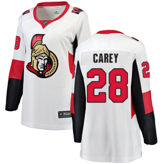 Women's Ottawa Senators #28 Paul Carey Fanatics Branded White Away Breakaway NHL Jersey