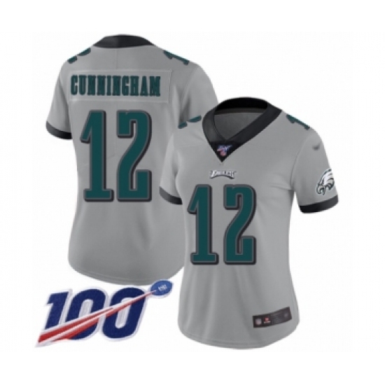 Women's Philadelphia Eagles #12 Randall Cunningham Limited Silver Inverted Legend 100th Season Football Jersey