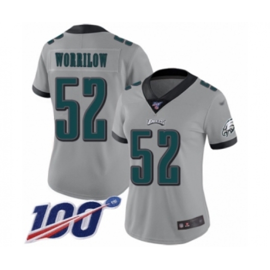 >Women's Philadelphia Eagles #52 Paul Worrilow Limited Silver Inverted Legend 100th Season Football Jersey