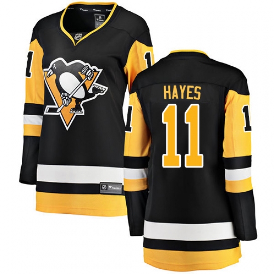 >Women's Pittsburgh Penguins #11 Jimmy Hayes Authentic Black Home Fanatics Branded Breakaway NHL Jersey