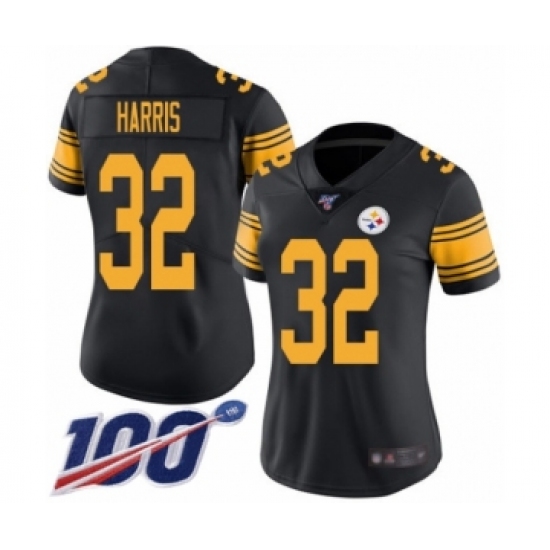 >Women's Pittsburgh Steelers #32 Franco Harris Limited Black Rush Vapor Untouchable 100th Season Football Jersey