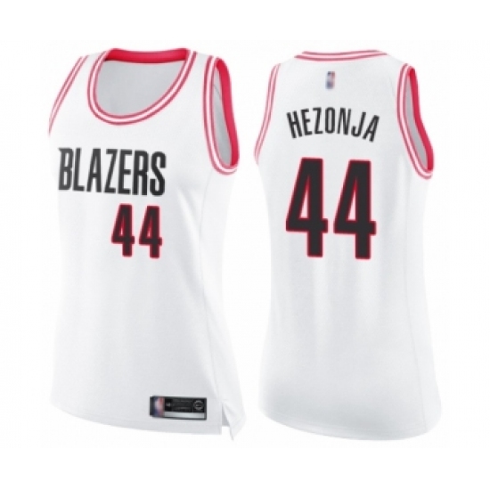 Women's Portland Trail Blazers #44 Mario Hezonja Swingman White Pink Fashion Basketball Jersey