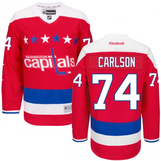 Women's Reebok Washington Capitals #74 John Carlson Authentic Red Third NHL Jersey