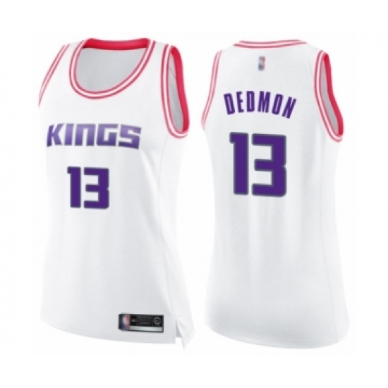 >Women's Sacramento Kings #13 Dewayne Dedmon Swingman White Pink Fashion Basketball Jersey