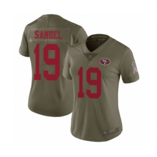 >Women's San Francisco 49ers #19 Deebo Samuel Limited Olive 2017 Salute to Service Football Jersey