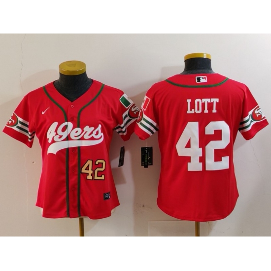Women's San Francisco 49ers #42 Ronnie Lott Red Mexico Cool Base Stitched Baseball Jerseys