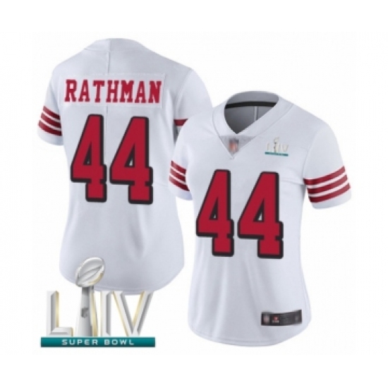 >Women's San Francisco 49ers #44 Tom Rathman Limited White Rush Vapor Untouchable Super Bowl LIV Bound Football Jersey