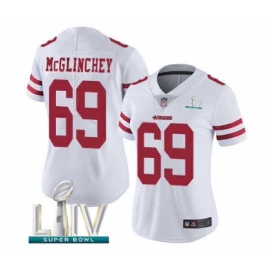 >Women's San Francisco 49ers #69 Mike McGlinchey White Vapor Untouchable Limited Player Super Bowl LIV Bound Football Jersey
