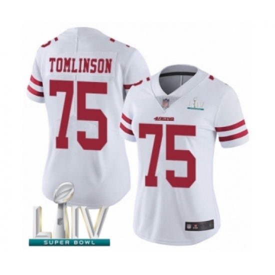 Women's San Francisco 49ers #75 Laken Tomlinson White Vapor Untouchable Limited Player Super Bowl LIV Bound Football Jersey