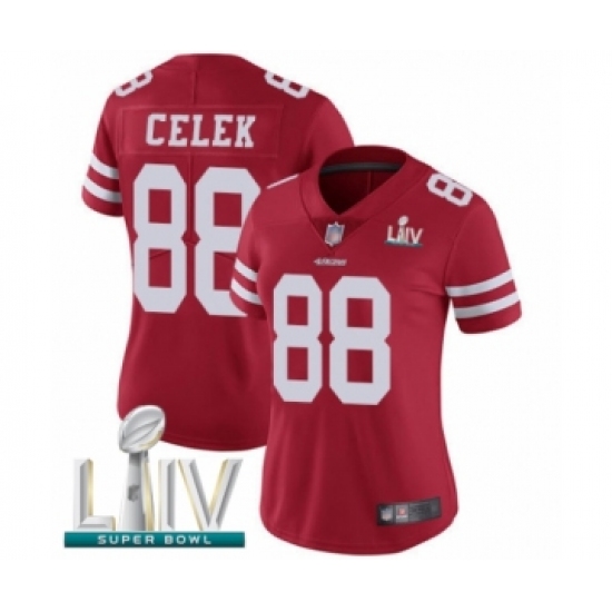 Women's San Francisco 49ers #88 Garrett Celek Red Team Color Vapor Untouchable Limited Player Super Bowl LIV Bound Football Jersey