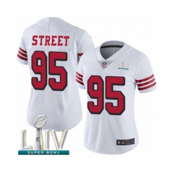 >Women's San Francisco 49ers #95 Kentavius Street Limited White Rush Vapor Untouchable Super Bowl LIV Bound Football Jersey