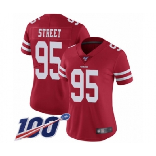 >Women's San Francisco 49ers #95 Kentavius Street Red Team Color Vapor Untouchable Limited Player 100th Season Football Jersey