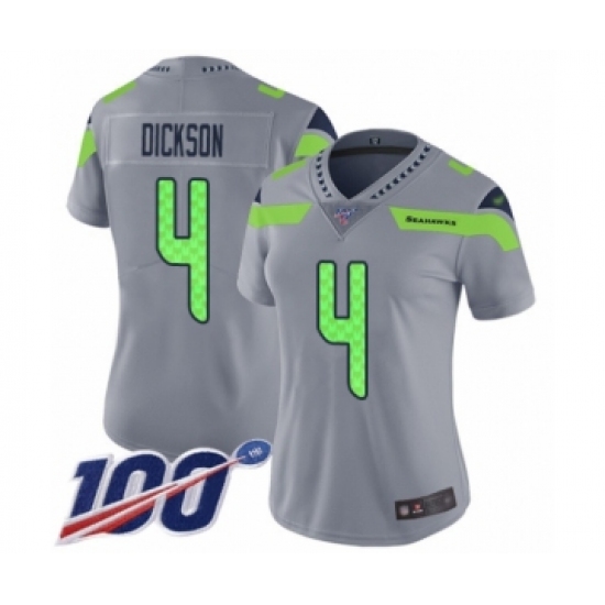 >Women's Seattle Seahawks #4 Michael Dickson Limited Silver Inverted Legend 100th Season Football Jersey