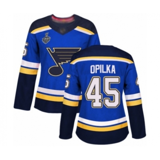 Women's St. Louis Blues #45 Luke Opilka Authentic Royal Blue Home 2019 Stanley Cup Final Bound Hockey Jersey