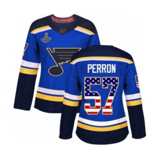 Women's St. Louis Blues #57 David Perron Authentic Blue USA Flag Fashion 2019 Stanley Cup Champions Hockey Jersey