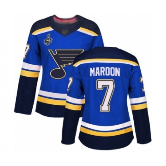Women's St. Louis Blues #7 Patrick Maroon Authentic Royal Blue Home 2019 Stanley Cup Final Bound Hockey Jersey