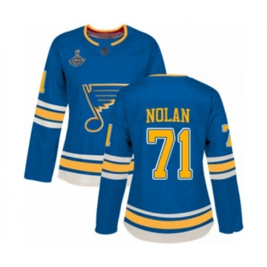 Women's St. Louis Blues #71 Jordan Nolan Authentic Navy Blue Alternate 2019 Stanley Cup Champions Hockey Jersey