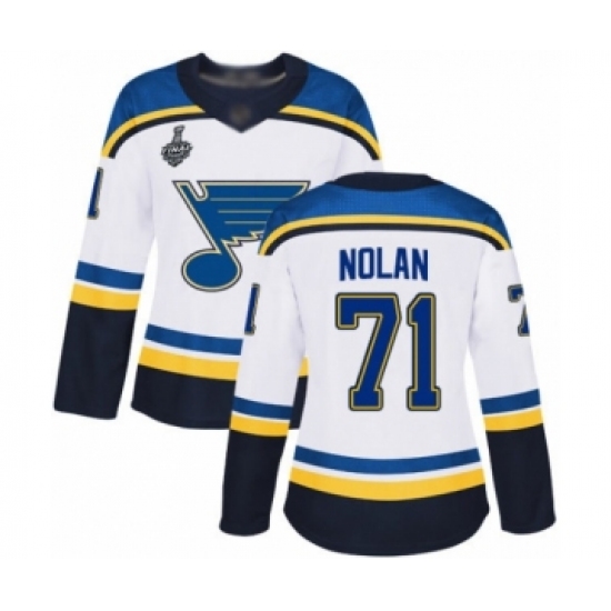Women's St. Louis Blues #71 Jordan Nolan Authentic White Away 2019 Stanley Cup Final Bound Hockey Jersey