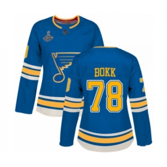 Women's St. Louis Blues #78 Dominik Bokk Authentic Navy Blue Alternate 2019 Stanley Cup Champions Hockey Jersey