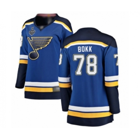 >Women's St. Louis Blues #78 Dominik Bokk Fanatics Branded Royal Blue Home Breakaway 2019 Stanley Cup Final Bound Hockey Jersey