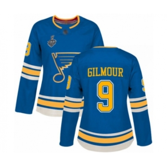 Women's St. Louis Blues #9 Doug Gilmour Authentic Royal Blue Home 2019 Stanley Cup Champions Hockey Jersey