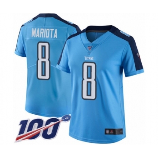 Women's Tennessee Titans #8 Marcus Mariota Limited Light Blue Rush Vapor Untouchable 100th Season Football Jersey