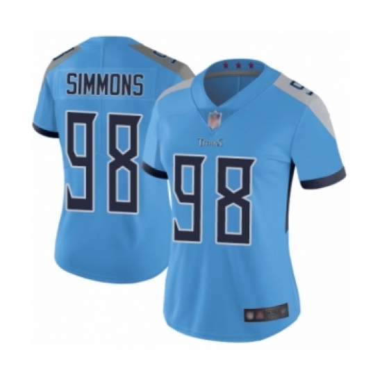 Women's Tennessee Titans #98 Jeffery Simmons Light Blue Alternate Vapor Untouchable Limited Player Football Jersey