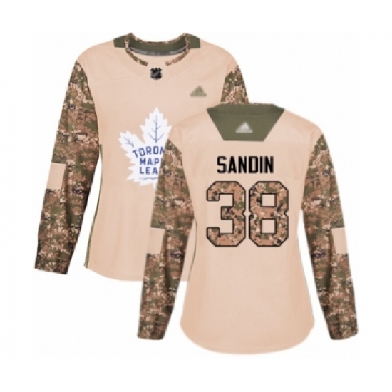 >Women's Toronto Maple Leafs #38 Rasmus Sandin Authentic Camo Veterans Day Practice Hockey Jersey