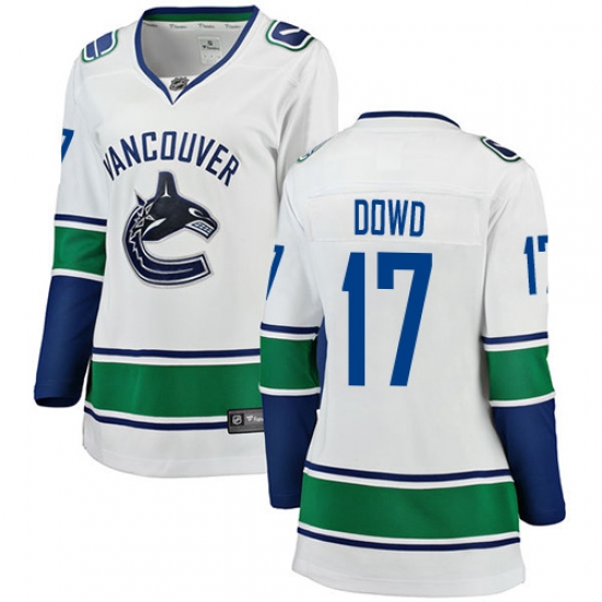>Women's Vancouver Canucks #17 Nic Dowd Fanatics Branded White Away Breakaway NHL Jersey
