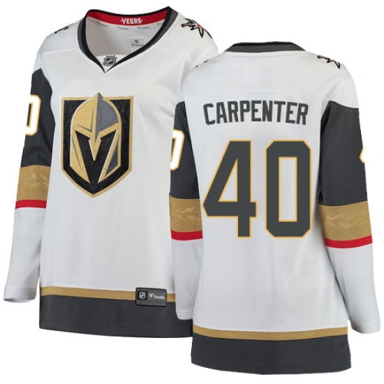 >Women's Vegas Golden Knights #40 Ryan Carpenter Authentic White Away Fanatics Branded Breakaway NHL Jersey