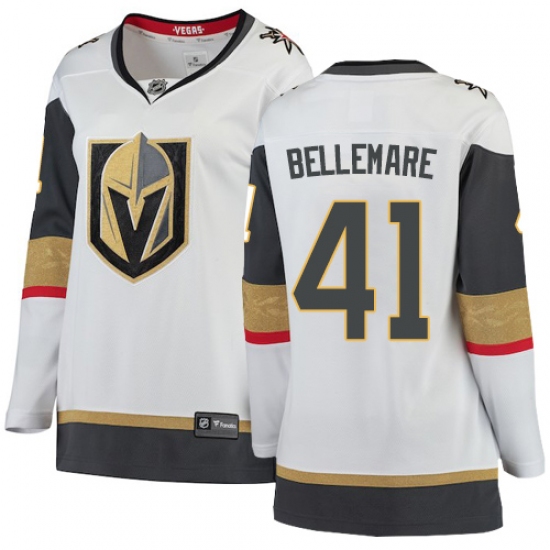 >Women's Vegas Golden Knights #41 Pierre-Edouard Bellemare Authentic White Away Fanatics Branded Breakaway NHL Jersey