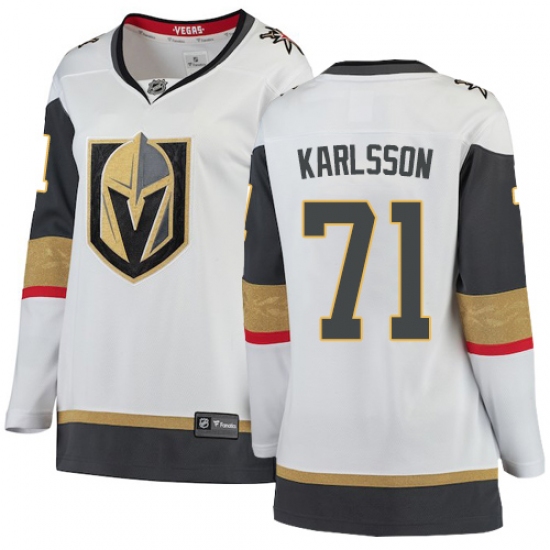 >Women's Vegas Golden Knights #71 William Karlsson Authentic White Away Fanatics Branded Breakaway NHL Jersey