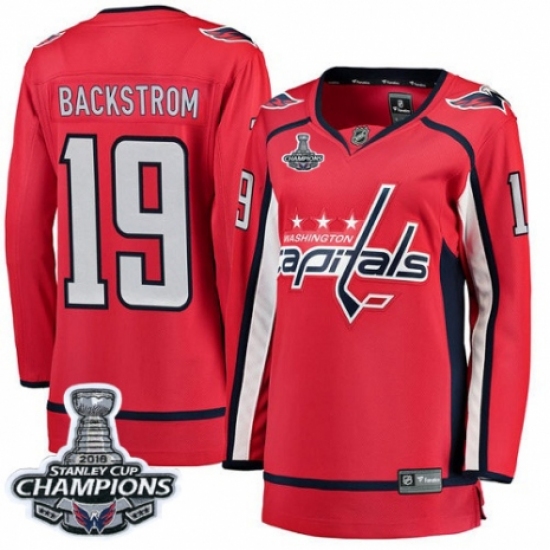 Women's Washington Capitals #19 Nicklas Backstrom Fanatics Branded Red Home Breakaway 2018 Stanley Cup Final Champions NHL Jersey