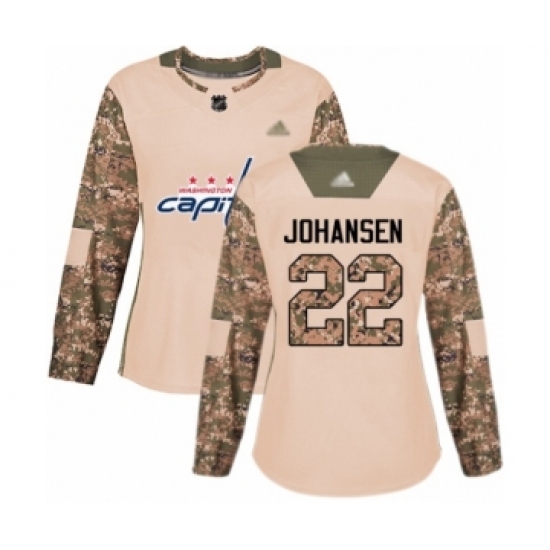 >Women's Washington Capitals #22 Lucas Johansen Authentic Camo Veterans Day Practice Hockey Jersey