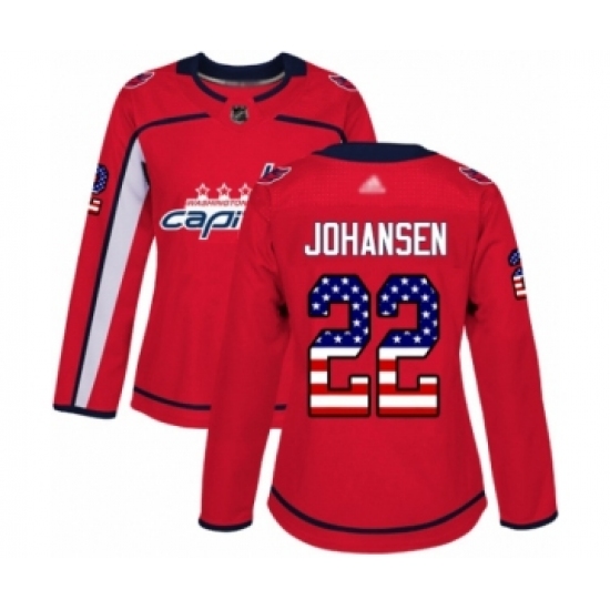 Women's Washington Capitals #22 Lucas Johansen Authentic Red USA Flag Fashion Hockey Jersey