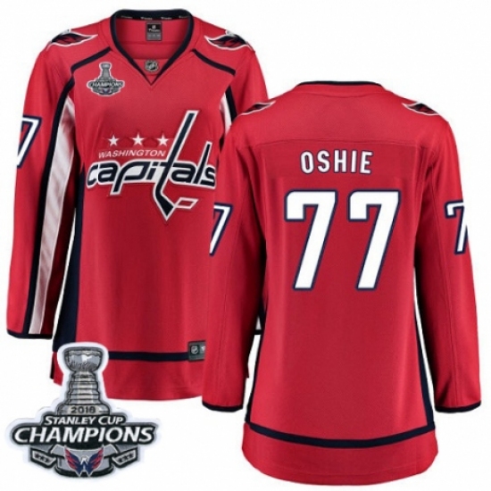 >Women's Washington Capitals #77 T.J. Oshie Fanatics Branded Red Home Breakaway 2018 Stanley Cup Final Champions NHL Jersey