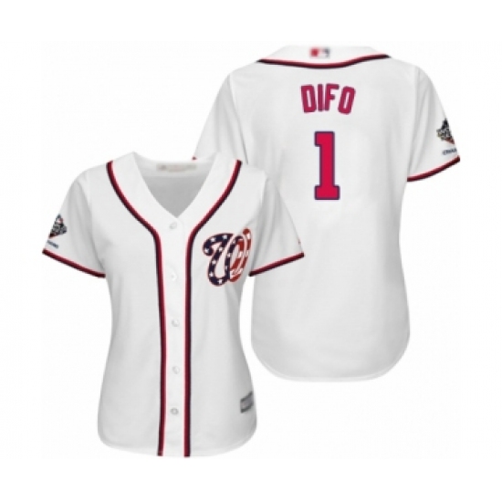 Women's Washington Nationals #1 Wilmer Difo Authentic White Home Cool Base 2019 World Series Champions Baseball Jersey